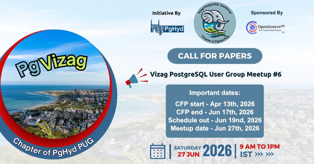 Call for Papers for PgVizag Meetup #6 is now Open! Speaker's Name *Speaker's Email Address *Company NamePhone *Title *0 / 500Abstract *0 / 2000Upload your image *Choose FileNo file chosenDelete uploaded fileKindly upload a high-resolution picture for the speaker announcement.SubmitPlease do not fill in this field.